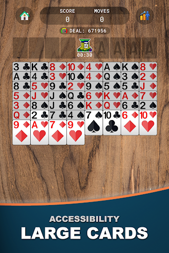 FreeCell Solitaire Premium stands out with its comprehensive feature set tailored for solitaire enthusiasts. Here are five notable features 1. One Million Winnable Deals - Each of the million numbered deals is solvable if played with skill allowing users to enjoy repeatable challenges and track their progress through winning streaks. 2. Accessibility Options - The game includes large cards dark mode and a left-hand option catering to various user needs especially beneficial for seniors or those preferring specific display settings. 3. Strategic Support Tools - Players can utilize unlimited undo and smart hints which assist in developing strategies without compromising the logical challenge of the game. 4. Daily Challenges and Leaderboards - Users can participate in online daily challenges earning trophies and competing on leaderboards which adds a competitive aspect to the otherwise solitary game. 5. Cloud Backup and Achievements - Supporting Google Play Games achievements and cloud backup ensures that players can continue their progress across devices and have their accomplishments recognized.