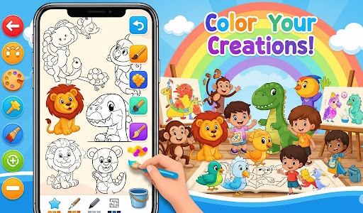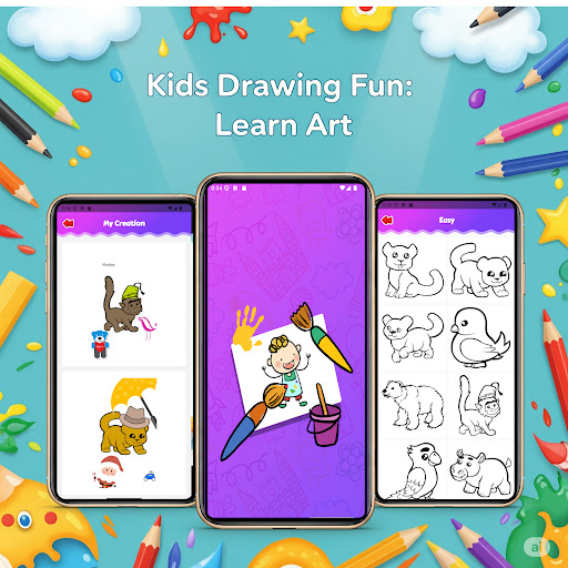 Fun Drawing & Color Learn Art is an educational drawing application designed to cater to users of all skill levels from beginners to experienced artists The app provides a comprehensive art learning experience through its rich features and tools It offers step by step drawing guides that help users learn to draw various subjects using simple shapes These include animals vehicles objects food and characters Additionally the app includes fun decorative elements like stickers and text options with multiple font styles colors and sizes Users can experiment with different brush types pencil colors and a magic brush for creating vibrant artwork The color fill tool and full palette options allow effortless coloring while the erase undo and redo functions ensure creative freedom without the fear of mistakes All drawings are automatically saved in a personal gallery where users can access and edit their work anytime With compatibility across tablets and smartphones this app provides a smooth experience on all Android devices Importantly the app is completely ad free with no subscription requirements making it an excellent choice for uninterrupted creative learning Whether you're looking to develop basic drawing skills or express artistic imagination Fun Drawing & Color Learn Art delivers a complete kid friendly and enriching experience