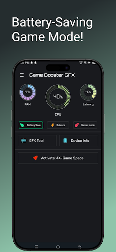 Game Booster GFX 4x is a specialized application designed to enhance mobile gaming performance by reducing lag and improving frame rates up to 120 FPS on compatible devices The app offers a comprehensive suite of features including 4x Game Space which expands the gaming environment and Device Info that provides essential system details for optimization Gamer Mode creates an immersive environment while the GFX Tool allows users to customize game resolution unlock extreme FPS settings and choose from various graphics styles such as Realistic Colorful Soft and Classic This ensures an Ultra HD and HDR visual experience making it ideal for gamers seeking optimal performance Available on Android platforms Game Booster GFX 4x stands out with its ability to deliver smoother gameplay without interruptions or quality degradation Overall this app serves as an excellent solution for mobile gamers looking to elevate their gaming sessions