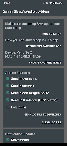 Garmin Sleep Advanced offers a robust set of features that cater to comprehensive sleep monitoring and health tracking. Here are five notable characteristics 1. Real-time Health Metrics Monitoring - The app provides continuous tracking of essential health indicators such as HRV SpO2 heart rate and movement offering users detailed insights into their physiological state during sleep. 2. Wide Device Compatibility - Supporting all Garmin wearables with Bluetooth streaming capability the app eliminates the need for ConnectIQ compatibility ensuring broader accessibility across Garmin's product lineup. 3. Seamless Integration with Sleep As Android - Serving as an advanced addon the app perfectly complements Sleep As Android's core functionalities enabling more precise sleep tracking and analysis. 4. User-friendly Setup Process - With straightforward permission settings and device selection procedures users can easily configure the app for optimal performance. 5. Comprehensive Wellness Solution - Beyond basic sleep tracking the app delivers a holistic approach to health monitoring providing valuable data that contributes to overall wellness management and lifestyle improvement
