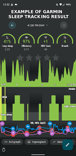 Garmin Sleep Advanced is a specialized health and fitness application designed to enhance sleep tracking by utilizing advanced metrics from Garmin wearable devices. This innovative app allows users to monitor crucial health indicators in real time including heart rate variability HRV blood oxygen saturation SpO2 heart rate HR and motion data. Compatible with all Garmin wearables that support Bluetooth streaming the app serves as an essential addon for the popular Sleep As Android app. Whether you're using a Garmin smartwatch or fitness tracker this app ensures comprehensive sleep analysis by gathering detailed physiological data during rest. The application's strength lies in its ability to provide accurate wellness insights without requiring ConnectIQ support making it accessible to a wide range of Garmin device owners. Overall Garmin Sleep Advanced represents a valuable tool for individuals seeking to optimize their sleep quality and better understand their overall health metrics through advanced wearable technology