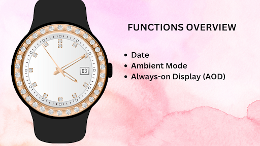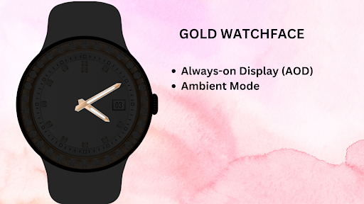 Gold Watch Face stands out with its blend of luxury and functionality. Here are five key features that make it unique 1. Luxurious Design - The watch face boasts a gold-tone interface adorned with sparkling embellishments, offering users a refined aesthetic that complements high-end fashion choices. 2. Classic Analog Display - Featuring a smooth analog layout, it provides a timeless feel while maintaining modern usability. 3. Date Display Functionality - For added convenience, the watch face includes a date display, blending practicality with its elegant design. 4. Always-On Display Support - Users can enjoy continuous elegance with AOD support, ensuring the watch face remains visually appealing even when idle. 5. Broad Compatibility - Designed for Wear OS devices running API 33+, it works seamlessly with popular models like Google Pixel Watch and Samsung Galaxy Watch, though it is optimized for circular screens only.