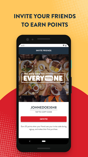 Golden Corral is a popular app with a ton of features and customization options. Here are five of our favorites: 1. Find a Location - Get directions to your local Golden Corral restaurant and view hours, services, and details. 2. Order & Reorder To Go - Easily order your favorite individual or family meals to go for curbside pickup service. Save your favorite orders to reorder again with just a few taps. 3. Payments & Gift Cards - Order even faster when you save your preferred payment. Save credit, debit, or gift cards to your profile. 4. Earn Points & Rewards - Register for Good as Gold Rewards and earn points automatically when you order through the app. Scan your code or upload your receipt to earn points for dining at your local Golden Corral. 5. Redeem Rewards - Redeem rewards as they are earned or bank them to save for a special dining event.