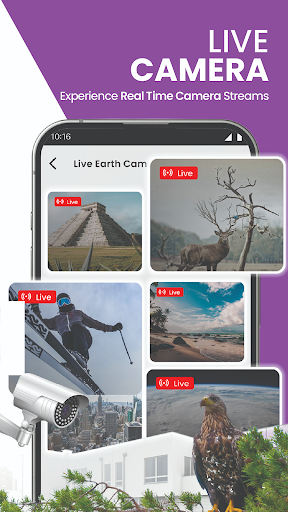 GPS Satellite Map Live Earth is a feature rich navigation app designed to enhance your travel and exploration experience Here are five of our favorite features 1 Live Earth Camera Streaming - Access live video feeds from airports nature scenes traffic cameras and famous landmarks around the world providing an immersive viewing experience 2 Voice Navigation - Get hands free driving directions with clear voice instructions allowing you to focus on the road while navigating 3 Real Time Traffic Updates - Stay informed about current traffic conditions and receive alternative route suggestions to avoid congestion 4 3D Satellite and Street Views - Explore cities and famous locations in stunning 3D with detailed satellite imagery and street level views 5 Location Sharing - Easily share your live location with friends or family ensuring they can track your whereabouts during journeys