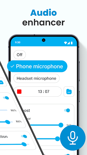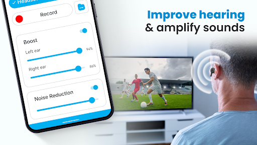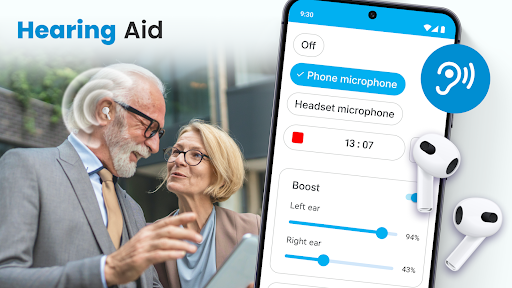 Hearing Aid App for Android stands out with its comprehensive set of features tailored for hearing enhancement. 1. Advanced Sound Amplification - The app increases volume levels while maintaining audio quality, making it easier to hear conversations and environmental sounds. 2. Noise Reduction Technology - Through sophisticated algorithms, the app filters out background disturbances, allowing users to focus on important sounds and speech. 3. Customizable Audio Settings - Users can adjust left and right ear sound levels independently, creating personalized hearing profiles. 4. Versatile Device Compatibility - Supporting both phone microphones and external Bluetooth devices, the app adapts to different user preferences and situations. 5. Comprehensive Recording Functionality - The built-in audio recorder enables users to capture and modify sounds, providing additional control over their listening experience.