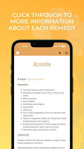Homeopathy at Home stands out with its comprehensive set of features tailored to homeopathic prescribing. Here are five notable features that highlight its functionality: 1. Instant Remedy Access - Get immediate information on 100 essential homeopathic remedies, forming the core of your homeopathy kit. 2. Symptom Matcher Tool - An intuitive system that helps identify the correct remedy by matching symptoms with suitable treatments. 3. Potency and Dosage Guidance - Provides clear instructions on choosing the right potency and dosage based on symptom severity and individual health profiles. 4. Educational Resource Links - Offers access to additional learning materials including ebooks, instructional videos, and detailed courses to expand your homeopathy knowledge. 5. Offline Functionality - Ensures that all features are accessible without an internet connection, allowing uninterrupted use anytime and anywhere.