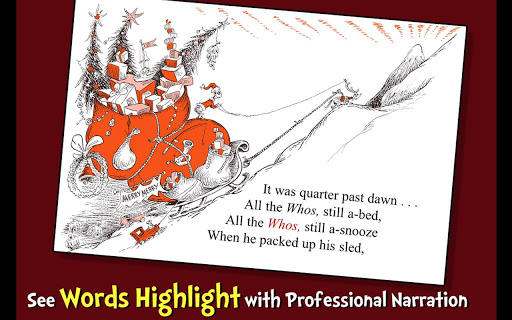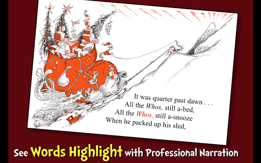 How the Grinch Stole Christmas offers an engaging way to introduce young children to reading through its interactive features and classic storyline. The app has several strengths such as its professional narration, interactive elements, and multiple reading options. These features not only make reading fun but also support early literacy development. However, there are some drawbacks to consider. For one, the app may require frequent updates to maintain compatibility with newer devices. Additionally, some users might find the need for internet connectivity limiting when trying to access all features. Overall, How the Grinch Stole Christmas is a valuable resource for parents and educators looking to foster a love of reading in young children. Despite minor limitations, it remains a highly recommended addition to any child's digital library.