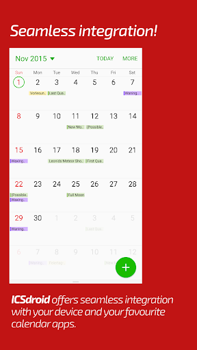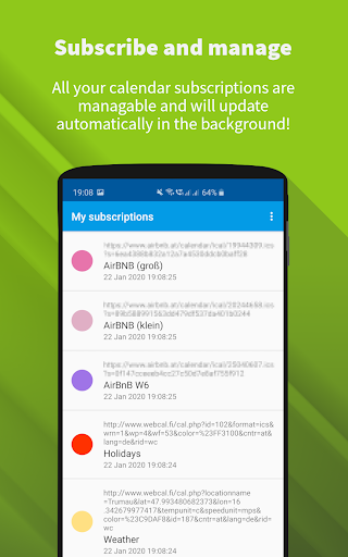 ICSxu2075 is a productivity application that allows users to add subscribe and manage external Webcal iCalendar ics files on their Android device providing seamless integration into the devices calendar system One of its key features is the ability to perform one way synchronization ensuring that users always have the most up to date version of their subscribed calendars The app supports various sources including iCloud shared calendars local ics files and webcal URLs It also offers advanced features like intelligent update checking authentication support and HTTPS security Importantly ICSxu2075 prioritizes user privacy as an open source app it ensures no data is transferred except to the chosen server making it a reliable choice for managing personal or professional schedules