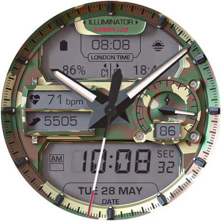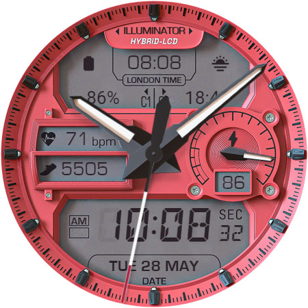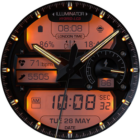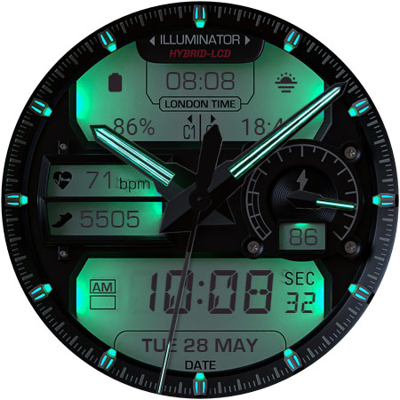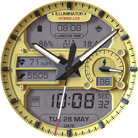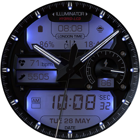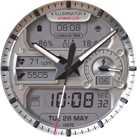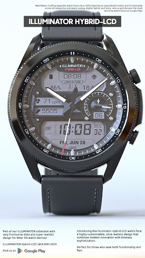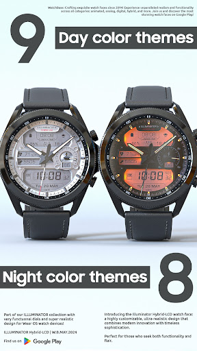 ILLUMINATOR Hybrid-LCD is a sophisticated watch face application designed specifically for Wear OS devices offering users an ultra-realistic and highly customizable timekeeping experience The app features a hybrid-LCD design with two custom complications and includes beautiful night modes making it both functional and visually appealing With support for automatic 12h24h mode nine different day themes and eight distinct night themes users can personalize their watch face to suit their preferences The app also provides practical indicators such as heart rate steps battery level and AM-PM ensuring that users have access to essential information at a glance Additionally the Always On Display AOD feature with three color themes and hand colors offers continuous visibility even when the watch is in lowpower mode Available exclusively on Android Wear devices ILLUMINATOR Hybrid-LCD represents an excellent choice for those seeking a realistic and versatile smartwatch interface