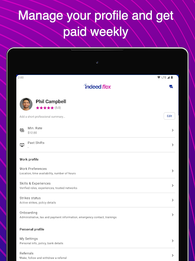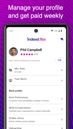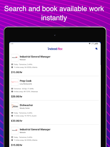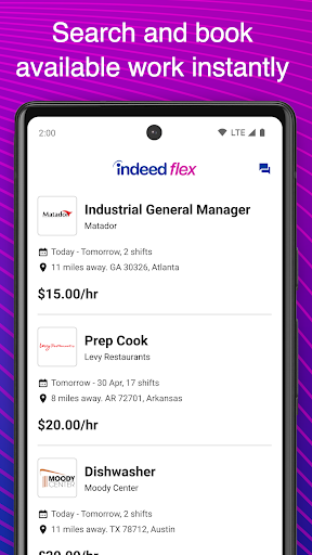 Indeed Flex is a business application designed to help users find temporary work opportunities that fit their lifestyle and schedule. This app connects job seekers with top companies across the United States, offering a wide range of short and long-term temporary roles in various industries. Available in major cities like Dallas, Austin, Houston, Nashville, Atlanta, Cincinnati, Columbus, Ontario California, Chicago, and the Washington D.C. Metro Area, Indeed Flex provides instant access to jobs that match individual needs. The app's user-friendly interface allows for easy navigation while giving users complete control over where, when, and how they work. Backed by Indeed, the world's leading job site, Indeed Flex ensures seamless connections between employers and job seekers. One standout feature is its Live Chat support function, which requires Foreground Service Permission to keep users connected even when using other apps. Overall, Indeed Flex represents an excellent solution for those seeking flexible work arrangements and better work-life balance.