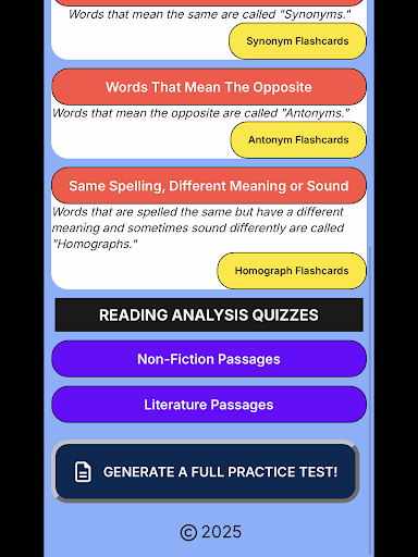 The iRead-3 Practice App comes packed with features that enhance the test preparation process Here are five key highlights 1 Comprehensive Content Coverage - The app includes every content area tested on the iRead-3 exam ensuring students are fully prepared across all subjects 2 Dynamic Question Generation - Each time a student selects a reading comprehension category a new set of questions is generated providing endless practice opportunities 3 Authentic Test Simulation - The app replicates the official exam's format and presentation giving students a realistic testing experience on a digital platform 4 Full-Length Practice Exams - Students can take complete practice tests that simulate the actual exam conditions helping them manage time and stress effectively 5 Skill-Building Repetition - With unlimited practice sessions students can reinforce their learning and improve their performance over time
