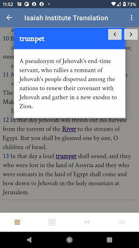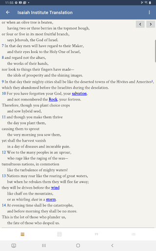Isaiah Explained offers a rich set of features that enhance the study of Isaiah s prophecies Here are five key highlights 1 Interactive Analysis Tools - The app provides user friendly tools for breaking down complex literary structures enabling readers to grasp intricate prophecy patterns 2 Historical Context Integration - Users can explore how Isaiah s predictions relate to both his time and the future providing a comprehensive view of world events 3 Expert Commentary Access - Gain insights from leading scholars through detailed commentaries that clarify challenging passages 4 Customizable Study Plans - Create personalized reading schedules to systematically progress through Isaiah s texts at your own pace 5 Cross Referencing System - Quickly navigate between related passages and themes for a more interconnected understanding of the material