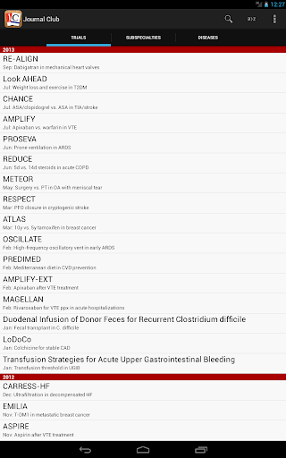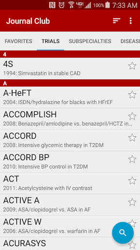 Journal Club for Medicine is a specialized medical application that provides healthcare professionals with quick access to summarized landmark clinical trials in internal medicine. The app delivers over three new article reviews monthly covering both classic and contemporary studies. Created by physicians this tool distills complex research into easily digestible summaries allowing clinicians to stay updated with practice-changing studies efficiently. Available on Android devices the app features an intuitive interface with functionalities like sorting trials by various criteria integrated search and sharing capabilities making it an essential resource for internists and medical subspecialists who need reliable information at their fingertips.