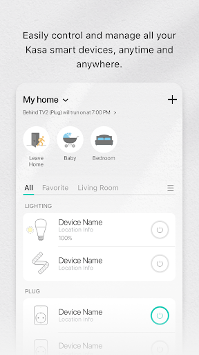 Kasa Smart is a comprehensive smart home management application that allows users to control and monitor their TP-LINK smart devices remotely. The app serves as a central hub for managing a wide range of smart home products including plugs switches power strips bulbs cameras and routers. With Kasa Smart users can create schedules automate routines and even set Away Mode to make their homes appear occupied while they are away. This level of customization and control makes the app an essential tool for enhancing home security and energy efficiency. Available on mobile platforms the app provides real-time updates and notifications ensuring users stay informed about their home's status at all times. Overall Kasa Smart offers a reliable and versatile solution for anyone looking to upgrade their living space with smart technology.