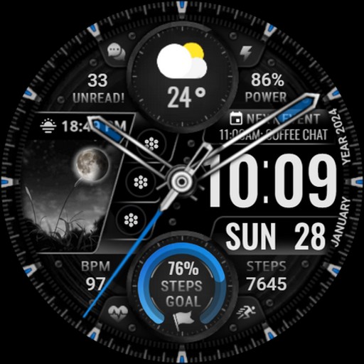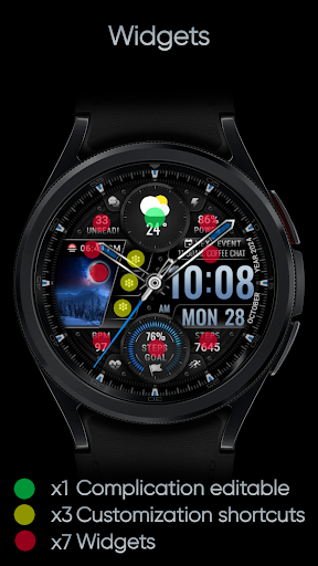 SHADOW offers a comprehensive suite of features that cater to diverse user preferences Here are five notable aspects that make this watch face application stand out 1 Customizable Complications - Users can tailor the displayed information by selecting from various data sources such as weather world clock sunset sunrise and barometer readings allowing for a personalized and informative watch face 2 Health Tracking Integration - The app includes essential health metrics like step counting heart rate monitoring and battery level display helping users maintain awareness of their fitness goals and device status 3 Multiple Color Options - With five distinct color settings for background clock hands and steps progress users can create a visually appealing watch face that matches their personal style 4 Practical Information Display - SHADOW provides useful details such as date day of the week month moon phase unread message count and upcoming event notifications ensuring users stay informed at a glance 5 Device Compatibility - Supporting API level 30 and above this application works seamlessly with Google Pixel Galaxy Watch 4 5 6 series and other Wear OS devices offering broad compatibility for tech enthusiasts