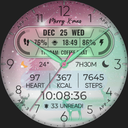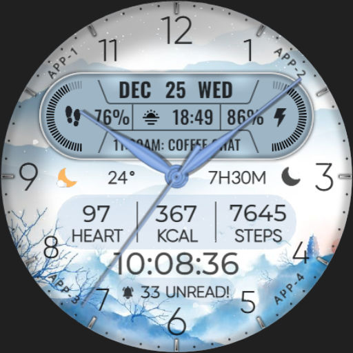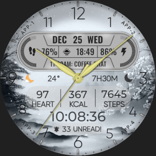 ART VIEW stands out in the world of Wear OS watch faces thanks to its extensive customization options Here are five notable features 1 Hybrid Design Style - Combines traditional watch aesthetics with modern digital elements providing a unique and stylish appearance 2 Eight Customizable Complications - Users can choose from various data points including weather world clock and health metrics tailoring the display to their specific needs 3 Comprehensive Health Tracking - Includes features like step counting heart rate monitoring and calorie calculation making it a useful tool for fitness enthusiasts 4 Ten Color and Style Variations - Offers diverse aesthetic options allowing users to match their watch face with personal preferences or seasonal themes 5 Special Animations - Features a festive snowfall animation during the Xmas season adding a touch of holiday spirit to the smartwatch display These features collectively make ART VIEW a powerful and flexible choice for customizing Wear OS devices
