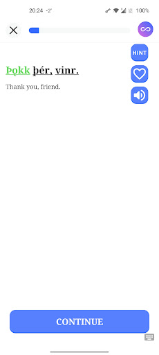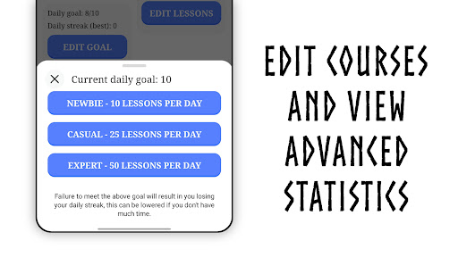 Learn Old Norse+ is an educational application designed to simplify the process of learning the ancient Viking language also known as Old Norse or the Northern Germanic language. This app offers a comprehensive approach to language acquisition by providing various interactive methods such as filling in missing words within relevant contexts and listening exercises where users select correct words after hearing text read aloud. Additionally it features an integrated Old Norse Dictionary with search capabilities enhancing vocabulary building. Learn Old Norse+ supports diverse learning styles through customizable daily goals and lessons per course allowing learners to adjust their study intensity according to personal schedules and preferences. With over 2000 words and phrases available for learning including options like Old Norse Names FlashCards and a Younger Futhark translator this app ensures a rich immersive experience. The inclusion of English translations under Old Norse content maintains understanding without breaking immersion while offline support enables learning onthego except for features needing internet connectivity. Overall Learn Old Norse+ stands out as an essential tool for anyone interested in mastering this historic language offering both depth and flexibility in its educational framework making it suitable for casual learners and enthusiasts alike.