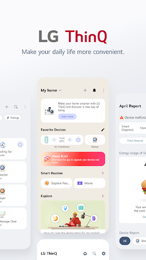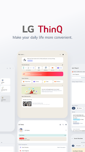 LG ThinQ is a popular app with a ton of features and customization options. Here are five of our favorites 1 Remote Appliance Control - Users can control their IoT home appliances from anywhere using the app providing convenience and flexibility in managing household devices. 2 Personalized Recommendations - The app offers tailored suggestions for managing appliances based on usage history helping users optimize their appliance usage. 3 Smart Routines - Create automated routines that match your lifestyle such as turning on lights and air purifiers at wake-up time or turning off products when on vacation to save energy. 4 Energy Monitoring - Monitor and compare your power usage with neighbors set energy saving goals and receive notifications to help save energy more efficiently. 5 AI-Powered Support - Access care services and troubleshooting through the AI-powered Chat with LG feature which provides answers tailored to your product's situation and condition.