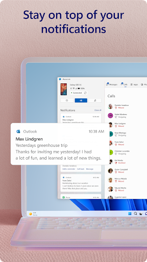 Link to Windows is a productivity application that allows users to seamlessly integrate their Android phone with a Windows PC. It offers a variety of features including making and receiving calls, managing notifications, accessing mobile apps, and replying to text messages directly from the PC. Link to Windows can be used on both desktop and mobile platforms, making it a versatile tool for those who want to streamline their workflow between devices. One of the best things about Link to Windows is its ability to drag and drop files and photos between devices, copy and paste content, and use the PC's larger screen and peripherals to interact with the phone. This means that users can work more efficiently without having to switch between devices constantly. And, if you're using Link to Windows with a compatible Microsoft Duo, Samsung, or HONOR device, you can even access exclusive features like cross-device copy and paste, Phone screen, and file drag-and-drop. Overall, Link to Windows is an excellent application for enhancing productivity. Whether you're looking for call management, notification handling, or seamless file sharing, it's a great option.