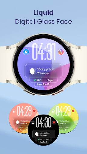 Liquid Digital Glass Face is a cutting-edge watch face application designed specifically for Wear OS smartwatches. This innovative app brings the futuristic aesthetic of Apple's Liquid Design to your wrist, offering users a visually stunning and highly customizable timepiece experience. The app features mesmerizing liquid glass effects that create an immersive transparent interface, blending seamlessly with the watch's content. It supports both 12-hour and 24-hour digital clock formats while providing essential information through customizable complications. Users can personalize their watch faces with various data points including weather updates, step counts, battery levels, heart rate monitoring, and upcoming events. The app also offers customizable shortcuts for quick access to frequently used apps and functions such as alarms, timers, workout apps, and music controls. With its optimized Always-On Display mode, Liquid ensures that crucial information remains visible without excessive battery consumption. Available exclusively for Wear OS devices, this app represents the forefront of modern watch face design, combining contemporary aesthetics with practical functionality. Whether you're looking to enhance your productivity or simply want to sport a sophisticated digital look on your smartwatch, Liquid Digital Glass Face delivers an unparalleled user experience.