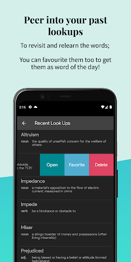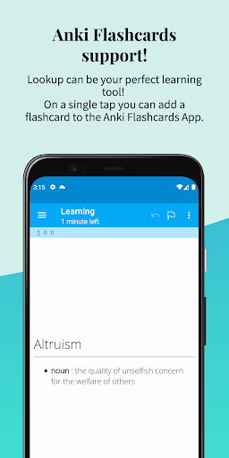 Look Up - Pop Up Dictionary Pro stands out with its comprehensive set of features tailored to enhance vocabulary learning and reference checking. Here are five notable features 1. Multi-language Support - The app supports seven international languages providing users worldwide with easy access to word definitions and translations. 2. Offline Functionality - With an extensive offline database of 0.22 million words users can look up terms without requiring an internet connection ensuring uninterrupted access to information. 3. Integration Capabilities - Look Up seamlessly integrates with popular apps like Moon Reader and Anki Flashcards allowing users to create flashcards and access definitions directly within their reading environment. 4. Customizable Learning Tools - Users can add personal notes star important words and review recent searches creating a personalized and effective learning experience. 5. Enhanced User Experience - Features like dark mode word pronunciation and material design ensure comfortable and enjoyable usage regardless of time or lighting conditions.