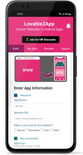 Lovable2App is a business application that enables users to convert their Lovable.dev websites into fully functional Android apps without any coding skills The app offers instant conversion capabilities allowing users to enter their website URL and customize the app with branding colors and features It provides AI powered technology for seamless browsing and a native app experience along with push notifications for user engagement Lovable2App supports various platforms including Lovable.dev Shopify Wix WordPress and more making it versatile for website owners entrepreneurs and small businesses The app also offers modern UI design offline screen support easy app sharing and Google Play Store ready AAB export Overall Lovable2App is an excellent tool for transforming websites into mobile apps quickly and efficiently