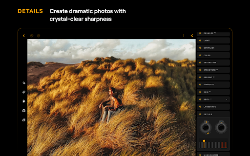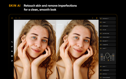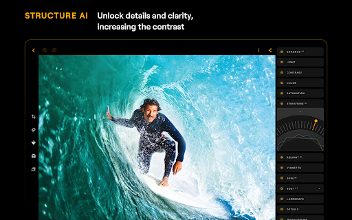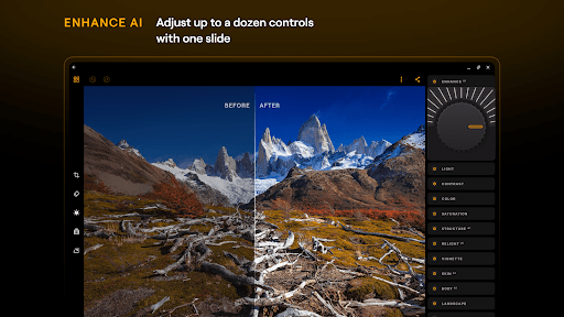 Luminar Photo Editor stands out as a feature-rich application tailored for photographers of all skill levels. Here are five key highlights: 1. Smart AI Enhancements - Powered by cutting-edge technology, the app includes tools like SkyAI, EnhanceAI, and SkinAI, which automate complex editing tasks such as sky replacement, quality enhancement, and skin retouching, saving time while delivering professional results. 2. Intuitive User Interface - The app features a sleek design with gesture-based controls, realistic motion feedback, and sound effects, ensuring an immersive and easy-to-navigate editing experience. 3. Advanced Editing Tools - Users can access precise editing options such as Curves for tone adjustments, Details for clarity enhancement, and Monochrome for creating stunning black-and-white images. 4. RAW File Support - Luminar allows direct editing of RAW files, preserving maximum image quality and offering flexibility during post-processing. 5. Cross-Platform Compatibility - Optimized for both Android 11+ and ChromeOS devices, the app provides a consistent and reliable performance regardless of the platform, enhancing its utility for on-the-go creativity.
