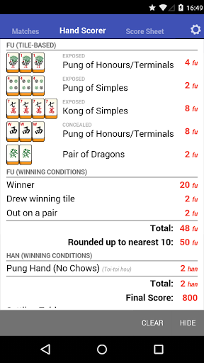 Mahjong Helper & Calculator offers numerous advantages for Mahjong enthusiasts One of the standout benefits is its ability to simplify complex scoring systems across various Mahjong styles including European Classical Hong Kong Japanese Modern and Chinese Official The apps intuitive interface with beautiful easytoread tiles and a userfriendly hand scorer makes the scoring process more accessible even for beginners Additionally the Score Sheet feature that calculates payments and supports Ready declarations in Japanese Mahjong adds a layer of convenience and accuracy However the app does have some drawbacks For instance it requires a data connection to share matches across devices which might be inconvenient for users without consistent internet access Moreover while the app covers many scoring systems some niche variations might not be included Overall Mahjong Helper & Calculator is a valuable resource for anyone looking to enhance their Mahjong experience by streamlining scoring and payment processes