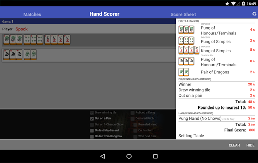Mahjong Helper & Calculator is an innovative application designed to assist both novice and experienced Mahjong players in simplifying the scoring process and managing payments between games The app offers a comprehensive set of features including multiple match tracking beautiful easytoread tiles and an intuitive hand scorer calculator which supports various scoring systems such as European Classical Hong Kong Japanese Modern EMF Riichi and Chinese Official MCR Competition With support for 4 3 and 2 player scoring modes users can send scores from the Hand Scorer to the Score Sheet or enter them manually Additionally the Score Sheet calculates payments between players supports Ready declarations and counters in Japanese Mahjong and provides a detailed breakdown of score calculations on the Scoring panel This feature is particularly beneficial for those learning the game or wanting to doublecheck their calculations The app also supports seat rotation between rounds or allows players to maintain the same positions throughout Furthermore Mahjong Helper & Calculator enables sharing matches across devices allowing other players to keep a record of the match and contribute to scoring from their own Android or iOS devices provided there is a data connection Overall Mahjong Helper & Calculator is an excellent tool for enhancing the Mahjong playing experience by streamlining scoring and payment processes while offering valuable learning resources
