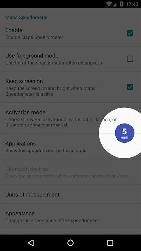 Maps Speedometer stands out with its diverse feature set tailored for drivers and travelers. Here are five notable features 1 Automatic Display Control - The app intelligently shows or hides the speedometer overlay based on the active status of user-selected apps or Bluetooth connections ensuring the speed display appears only when needed. 2 Customizable Appearance - Users can personalize the overlay's transparency size position and even choose from various color styles to match their preferences and ensure minimal interference with the main app interface. 3 Multiple Speed Units - Supporting measurements in miles per hour kilometers per hour or knots the app caters to a global audience and adapts to different driving environments such as roadways or marine settings. 4 Privacy-Centric Design - With no advertisements or internet access requirements Maps Speedometer guarantees a secure experience by not sharing personal data while providing uninterrupted functionality. 5 Broad Compatibility - Designed to work seamlessly with any installed app on Android devices this versatile tool enhances the driving experience across various applications without compatibility issues.