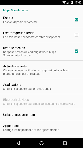 Maps Speedometer is a practical travel application that displays your current speed in real-time as an elegant overlay on your device screen. This innovative app automatically detects when your selected navigation or other apps are active and presents a sleek speedometer overlay without interrupting your main app usage. It also supports activation through Bluetooth connection to external devices making it versatile for different driving scenarios. The app offers multiple customization options including speed units selection between mph km/h or kn adjustable transparency size positioning and color schemes to suit individual preferences. With no advertisements or internet access required Maps Speedometer ensures a smooth and private user experience. Available exclusively on Android devices this app proves especially useful for drivers who want to monitor their speed while using navigation apps. Overall Maps Speedometer provides an essential tool for anyone seeking to maintain safe driving speeds while staying focused on their journey.