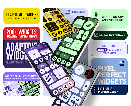 Material Widgets is a personalization application that allows users to enhance their home screen with over 200 beautifully designed widgets inspired by Google's Material 3 design. It offers a variety of features including automatic color adaptation to wallpapers, seamless dark and light mode adjustment, and native functionality without requiring third-party apps. Material Widgets can be used on Android devices, making it a versatile tool for those looking to customize their smartphone experience. One of the best things about Material Widgets is its fully resizable and adaptive design. This means that every widget scales beautifully from compact sizes to full-screen layouts. And, if you're using Material Widgets on your Android device, you can even access matching wallpapers and enjoy a cohesive look. Overall, Material Widgets is an excellent application for personalizing your smartphone. Whether you're looking for clock widgets, weather updates, or productivity tools, it's a great option.