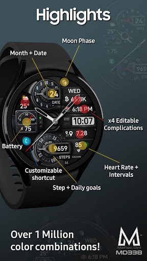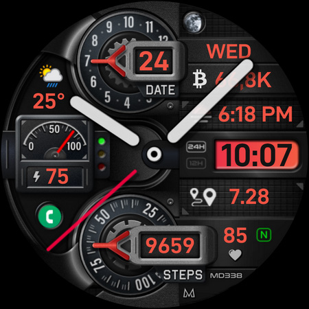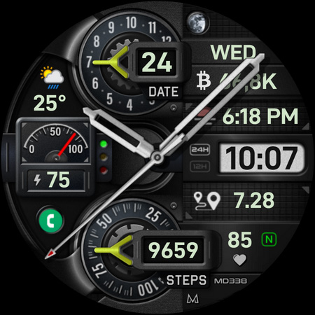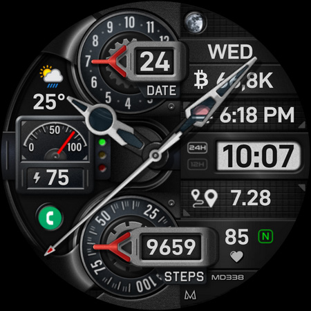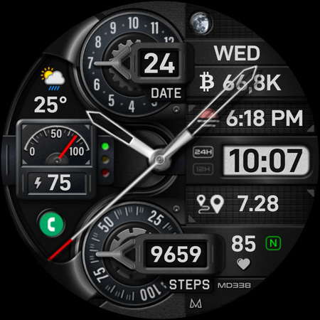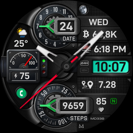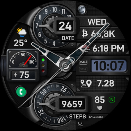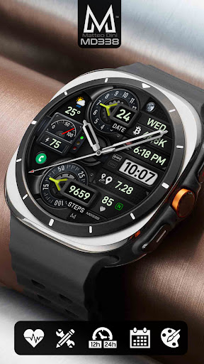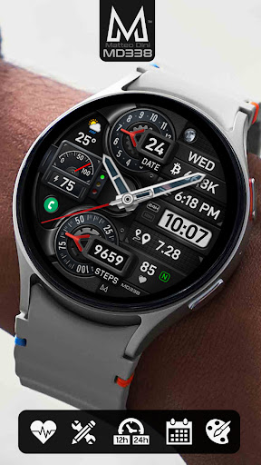 MD338 Hybrid watch face is an advanced digital watch face designed for Wear OS devices offering users a highly customizable experience It features a hybrid design that combines traditional watch aesthetics with modern smartwatch functionality The watch face supports all Wear OS devices with API Level 33+ including Samsung Galaxy Watch 4-8 Ultra and Pixel Watch One of its standout features is the ability to customize up to four complications allowing users to display preferred data such as weather barometer distance walked calories and more Additionally it offers up to 1 million color combinations giving users extensive personalization options The watch face also includes practical features like battery monitoring heart rate tracking and app shortcuts for calendar battery heart rate measurement and alarm setting Users can customize the watch face directly on their device by tapping and holding the screen then selecting the customize option Overall MD338 Hybrid watch face provides a versatile and personalized smartwatch experience making it an excellent choice for users seeking both style and functionality in their wearable devices