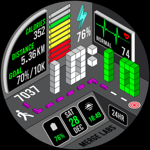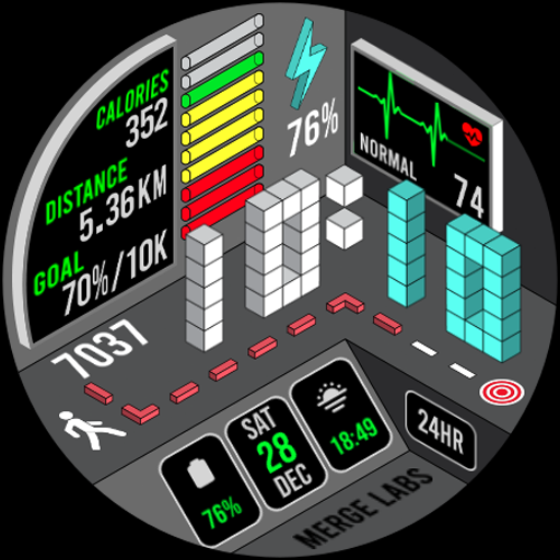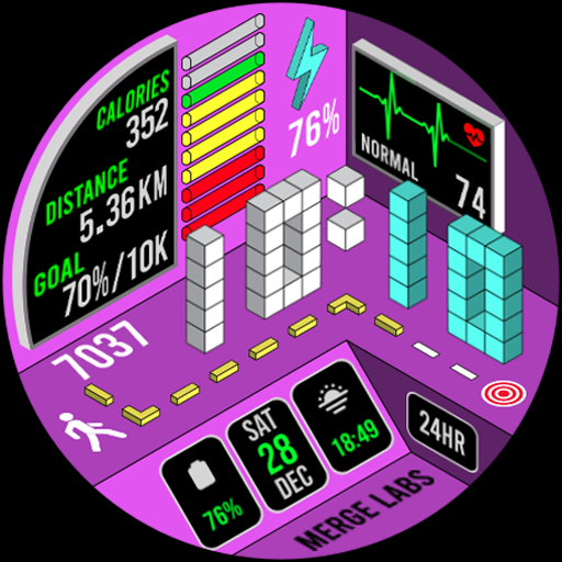 Merge Labs Isometric 5 is a distinctive smartwatch face designed exclusively for Wear OS devices. This innovative application reimagines traditional watch elements such as heart rate, step count, and battery status through an isometric design lens, offering users a unique visual experience. The app stands out with its customizable features including 25 color schemes and two small box complications for personalized information display. It provides comprehensive health tracking with graphic indicators for steps and heart rate, alongside practical functionalities like tap-to-open apps for battery and heart rate management. Compatible solely with Wear OS, this watch face ensures both aesthetic appeal and utility, making it ideal for users seeking a blend of style and functionality in their smartwatch interface. Overall, Merge Labs Isometric 5 serves as an excellent choice for those looking to enhance their wearable's appearance while maintaining essential features.