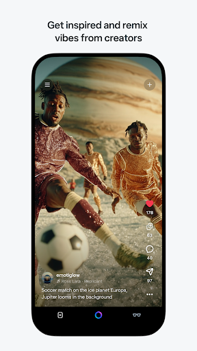 Meta AI is a productivity application that allows users to create and share AI-generated videos with custom animations and music. The app serves as a creative hub where users can describe their ideas and generate perfect vibes through various edits and styles. It also functions as a personal AI assistant, providing tailored answers and recommendations via voice or text. Meta AI supports hands-free operation by pairing with AI glasses, making it an essential tool for managing smart devices on-the-go. With access to industry-leading AI models, the app enables creators to produce high-quality content while offering a social platform to discover and remix other creators' work. This makes Meta AI valuable for both professional creators and casual users seeking creative inspiration.