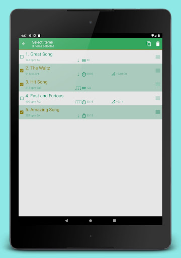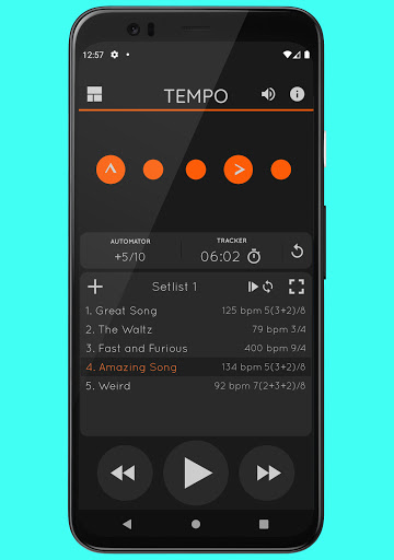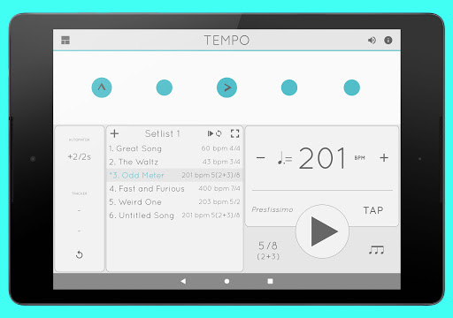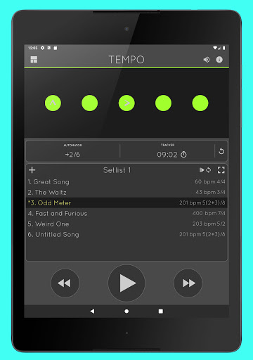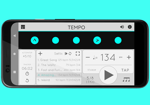 Tempo offers a comprehensive suite of features that cater to various rhythm and tempo needs. Here are five key highlights: 1. Customizable Time Signatures - Tempo provides 30 different time signatures including simple and compound meters allowing users to create complex rhythms with customized accents or beat silencing. 2. Versatile Setlist Management - Users can store presets in multiple setlists with advanced management options like search overwriting copying between setlists and multi-deletion ensuring efficient organization. 3. Tracker and Automator - This feature enables tracking the number of bars played or timing practices with automatic stop functions and tempo adjustments enhancing practice efficiency. 4. Diverse Sound Options - With 12 sound sets available including one optimized for live drumming users can control volume and enjoy uninterrupted playback even when multitasking. 5. Enhanced Usability - Tempo includes classical metronome functionalities Italian tempo markings and AirTurn Bluetooth controller support offering additional convenience and accessibility for users.