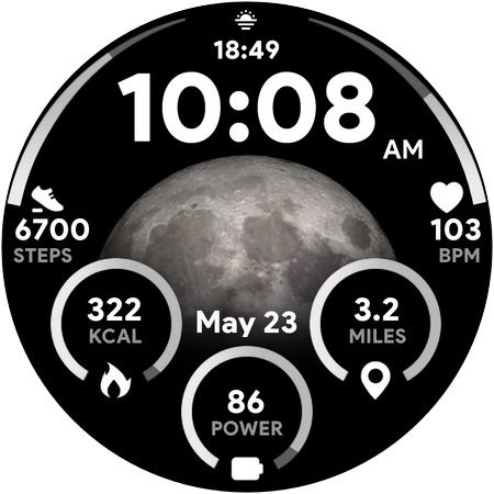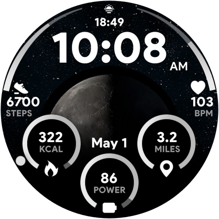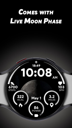 Moon Dial is a unique watch face application designed for Wear OS devices that provides users with essential information about the moon phase at a glance. This lifestyle app goes beyond basic timekeeping by offering a customizable interface that displays live moon phases and includes an optional star effect for aesthetic appeal. The watch face features big clear visuals of the moon phase making it easy to understand even in low-light conditions. It supports both 12 and 24-hour formats as well as KM or Miles measurements catering to different user preferences. With five custom complications available users can personalize their watch face by adding more data widgets according to their liking. Additionally Moon Dial offers two invisible app shortcuts on Calories and Distance allowing users to open their favorite apps by tapping these areas without affecting their original functionality. The app also provides quick access to battery percentage and heart rate measuring options enhancing overall usability. Whether you are an astronomy enthusiast or simply someone who appreciates functional design Moon Dial serves as an excellent tool for staying informed about lunar activities while enjoying a personalized smartwatch experience.