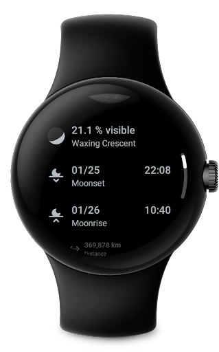 Moon on Wear is a specialized application designed for Wear OS that displays a large realistic moon with accurate rotation based on the user's location. This app offers a variety of complications to enhance your watchface including moon phase percentages descriptions and images as well as moonrise and moonset times. It also features a Moon-Tile view next to your watchface providing detailed lunar information such as moon age distance from earth and upcoming moon phases. The app ensures efficient battery usage while delivering data comparable to authoritative sources like timeanddate com and mooncalc org making it an excellent tool for both casual observation and in-depth lunar study on your smartwatch.