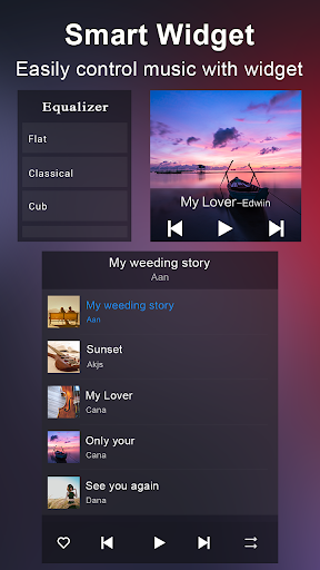 Music Player Plus is packed with features that enhance the music listening experience. Here are five notable ones 1 Powerful Equalizer - The app includes a five-band equalizer with eight preset tones and manual adjustment options allowing users to customize their sound output for optimal audio quality. 2 Custom Background Skins - With over 20 built-in background skins and the option to use personal images users can tailor the appearance of their music player to match their style. 3 Lyric Support - Automatic scanning and matching of lyric files provide real-time synchronized lyrics display enhancing the connection with the music. 4 Folder-Based Organization - Unlike typical music players this app organizes music by folder structure in addition to artist and album making it easier to navigate large music libraries. 5 Comprehensive Music Controls - Features like notification status controls shake-to-skip and headset support ensure users have complete control over their music playback without needing to interact directly with the screen.