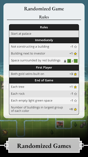 My City by Reiner Knizia stands out with its diverse features designed to enhance gameplay. First Strategic Tile Placement - Players must carefully place colorful building tiles to maximize points and efficiency. Second Multiple Game Modes - From the story-driven campaign to randomized games and daily challenges there's variety for every play style. Third Online Multiplayer - Compete against friends or other players worldwide in real-time matches. Fourth Accessibility Options - The game includes high contrast colors and symbols making it friendly for colorblind players. Fifth Extensive Language Support - Available in five languages ensuring global accessibility and understanding.