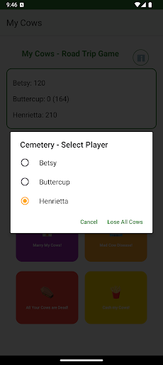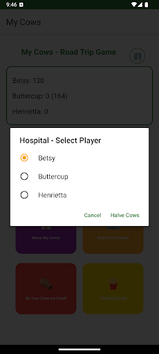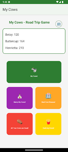 My Cows is packed with engaging features and strategic depth Here are five standout aspects 1 Cow Collection System - Build your herd by spotting cows in fields The more you see the larger your collection grows encouraging continuous engagement 2 Strategic Multipliers - Use landmarks like churches to double your cow count or hospitals to halve others creating layers of strategy and competition 3 Disaster Mechanics - Spotting a cemetery wipes out any players entire cow collection adding thrilling risk and reward dynamics 4 Banking System - Secure your cows by spotting McDonalds preventing them from being affected by future disasters offering smart tactical options 5 Automatic Score Tracking - The app handles all scoring automatically ensuring smooth gameplay without manual calculations These features combine to create a dynamic and entertaining experience for players of all ages
