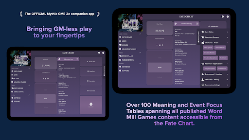 Mythic GM Emulator 2e is a comprehensive companion app designed for solo role-playing and tabletop RPG enthusiasts It offers an advanced oracle system with tools to craft intricate stories build characters and manage game elements The app features a robust journaling system allowing users to organize multiple adventure logs with markdown support and export options in JSON or Markdown formats Mythic GM Emulator 2e operates on both mobile and tablet devices providing optimized layouts for different screen sizes With its offline-first approach and accessibility features including screen-reader support adjustable fonts and multi-language UI it ensures an inclusive experience for all players Whether you are a game master or a writer seeking inspiration this app provides the tools to create immersive narratives and manage complex storylines with ease