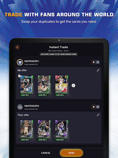 NBA Collect by Topps stands out as a feature-rich digital trading card app. Here are five notable aspects that make it appealing to collectors: 1. Daily Pack Rip - Users can open digital packs every day to discover new NBA player cards and expand their collections regularly. 2. Global Trading System - The app facilitates connections with NBA fans globally, allowing users to trade cards and complete their sets more efficiently. 3. Card Crafting Mechanic - Collectors can combine multiple cards to create rarer and more valuable collectibles, adding a strategic layer to the collecting process. 4. Real-Time Scoring Contests - Players can enter their collected cards into competitions based on live NBA games, offering chances to win in-app rewards and prizes. 5. Thematic Seasons and Progression - The app includes evolving seasonal themes where users can climb an experience ladder, unlocking new content and rewards as they advance.