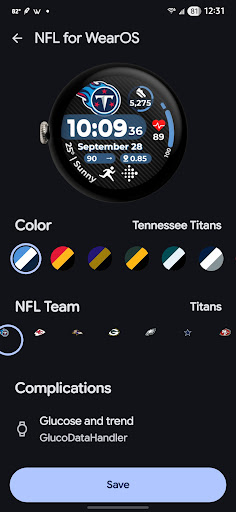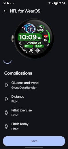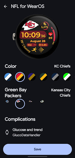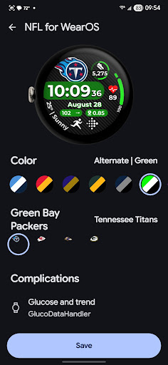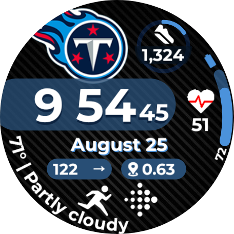 NFL on Wear OS is a specialized watch face application designed for sports enthusiasts and fitness-conscious individuals who want to display their team loyalty while monitoring essential health metrics The app combines bold team inspired designs with practical features making it ideal for use during workouts game days or daily activities Available on Wear OS devices this watch face provides users with an easy to read time display alongside real time health tracking including heart rate steps taken distance covered and activity statistics One of the standout features of NFL on Wear OS is its customizable options which allow users to personalize their experience with different NFL team themes and adjustable complications Users can choose from popular teams such as the Tennessee Titans Kansas City Chiefs and Dallas Cowboys among others The app also offers convenient weather updates and battery friendly performance ensuring that users stay informed without compromising their device's longevity With its stylish design and functional capabilities NFL on Wear OS serves as both a fashion statement and a practical tool for sports fans and fitness enthusiasts alike