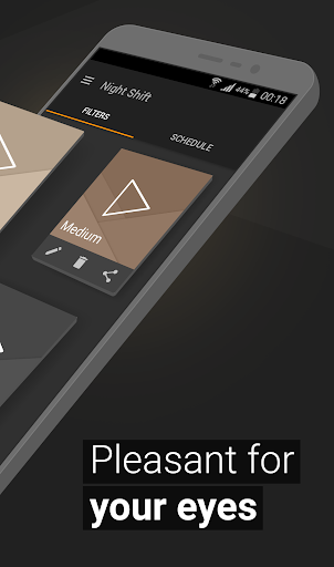 Night Shift offers a wide array of features that cater to various user needs making it a versatile choice for eye protection. 1. Premade Filters - The app provides ready-to-use blue light filters that effectively dim screens and protect eyes from harsh night brightness offering instant relief. 2. Saving and Editing Filters - Users can personalize their experience by creating custom dark filters with adjustable settings allowing unlimited variations for different scenarios. 3. Dimming Below System Minimum - This unique feature enables deeper screen dimming than standard device settings crucial for reducing headaches and insomnia caused by bright screens. 4. Temperature Customization - With precise control over color temperature users can set comfortable intensity levels tailored to their specific visual preferences. 5. Automatic Filter Schedule - The app intelligently manages filter activation based on user-defined schedules ensuring seamless transitions between day and night modes without manual adjustments.