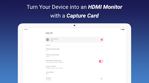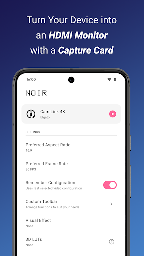Noir Pro is a professional video player and editor application designed for users who require advanced monitoring and display capabilities It transforms your mobile device into a versatile monitor supporting various input sources like gaming consoles laptops cameras and microscopes The app leverages USB-C capture cards to enable HDMI input making it an ideal solution for content creators gamers and professionals Noir Pro stands out with its support for UVC video streaming UAC audio streaming and the choice between OpenGL ES and Vulkan graphics backends ensuring optimal performance across different devices Whether you need a camera monitor a secondary display or a drone monitoring station Noir Pro provides a reliable and feature rich solution