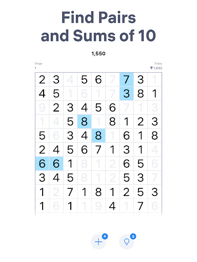 Number Match offers a rich set of features designed to enhance the puzzle-solving experience. 1. Simple yet Addictive Gameplay - The game requires players to find pairs of equal numbers or those that add up to ten, providing a challenging yet rewarding experience. 2. Brain Training Focus - With its logic-based mechanics, the game helps improve cognitive skills such as concentration and problem-solving. 3. Daily Challenges and Events - Players can participate in daily tasks and limited-time seasonal events to earn unique rewards and trophies. 4. Hint System - When stuck, users can utilize hints to uncover new moves and progress through difficult levels. 5. Cross-Platform Accessibility - Optimized for mobile devices, the game allows users to play anytime and anywhere, ensuring a seamless experience across different environments.