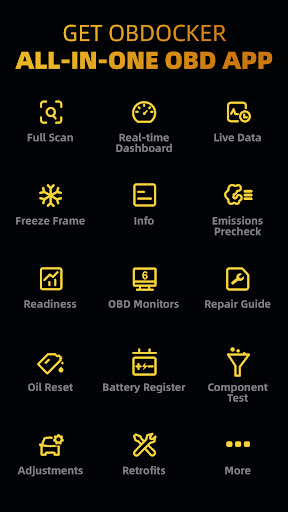 OBDocker is a popular app with a ton of features and customization options. Here are five of our favorites: 1. Triple-Mode Diagnostics - Perform full-system diagnostics multi-system scans or quick engine fault code checks providing flexibility in identifying vehicle issues. 2. Live Data Monitoring - Track vehicle performance in real-time with health engine and dash monitors offering valuable insights into your car's condition. 3. Full-Cycle Service Options - Access features like emissions pre-check EVAP leak tests DPF reinitialization and oil reset ensuring comprehensive vehicle maintenance. 4. One-Click Modifications - Adjust car settings and retrofit additional parts easily enhancing vehicle customization. 5. Wide Vehicle Compatibility - Supports standard OBD2 EOBD protocols and advanced modes for numerous brands making it suitable for a broad range of vehicles.