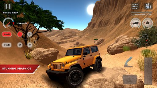 OffRoad Drive Desert is a highly realistic off-road simulation game designed for mobile devices, offering players an immersive experience of driving 4x4 vehicles across challenging desert terrains. The game stands out with its HD graphics and attention to detail, providing an experience akin to PC gaming. It features a Free Roam Mode that allows users to explore vast desert landscapes at their leisure, alongside a structured level-based mode where players can unlock new SUVs and maps as they progress. With real suspension physics and advanced vehicle dynamics such as differential lock and winch capabilities, the game caters to both casual gamers and hardcore off-road enthusiasts. Available on Android platforms, this app delivers a true-to-life off-road adventure that requires skillful navigation and strategic use of vehicle features to conquer difficult terrains while avoiding realistic damage effects.