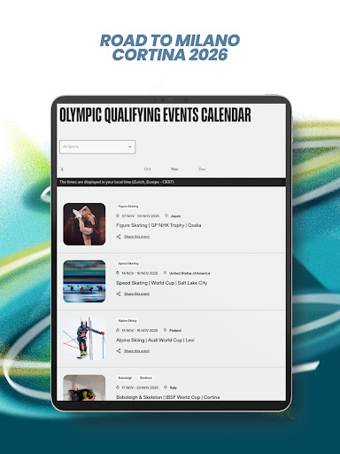 The Olympic Games app serves as a personal digital companion for sports enthusiasts looking to stay connected with the Olympic and Paralympic Winter Games Milano Cortina 2026. This comprehensive application provides users with up-to-the-second medal results customised schedules and essential spectator information. Available on mobile platforms it ensures fans can follow the Olympic Torch Relay access breaking news and receive live updates with behind-the-scenes content. The app's regular updates ensure users have the latest information at their fingertips making it an invaluable tool for those passionate about the Olympic movement.